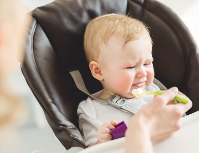 Algunos bebés se inquietan al sentarse en la silla para comer, no hay necesidad de obligarlos a comer siempre allí. Lo pueden hacer en tus piernas, o en otra mesa. Los bebés están en constante movimiento y exploración, es parte de su desarrollo.